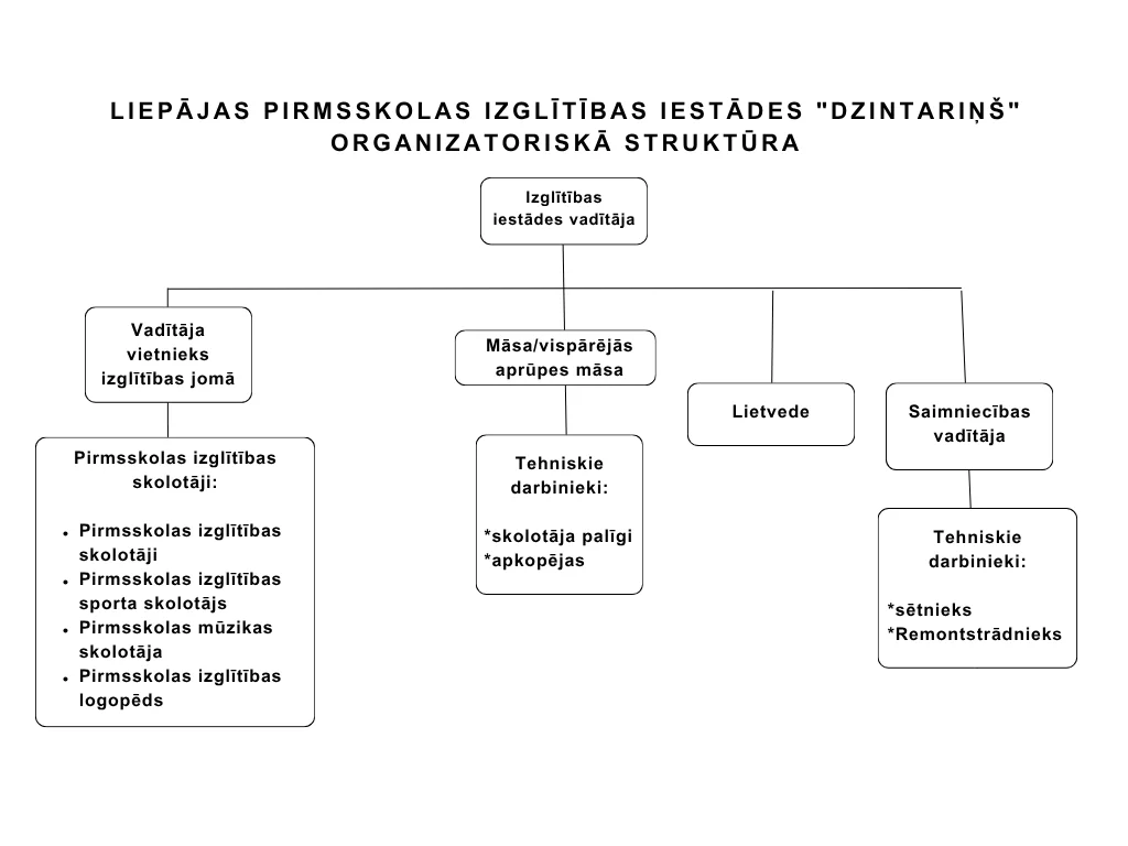 - Iestādi vada Kristiana Cetrovska; pedagoģisko darbu koordinē vadītājas vietniece izglītības jomā Guntra Lazdupe.